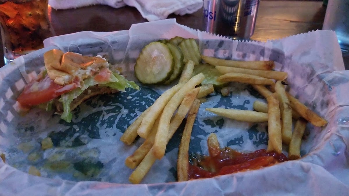 Did not have any food, but I hear the burgers are great. Great small town bar with a old school bar feel. Friendly staff and customers.